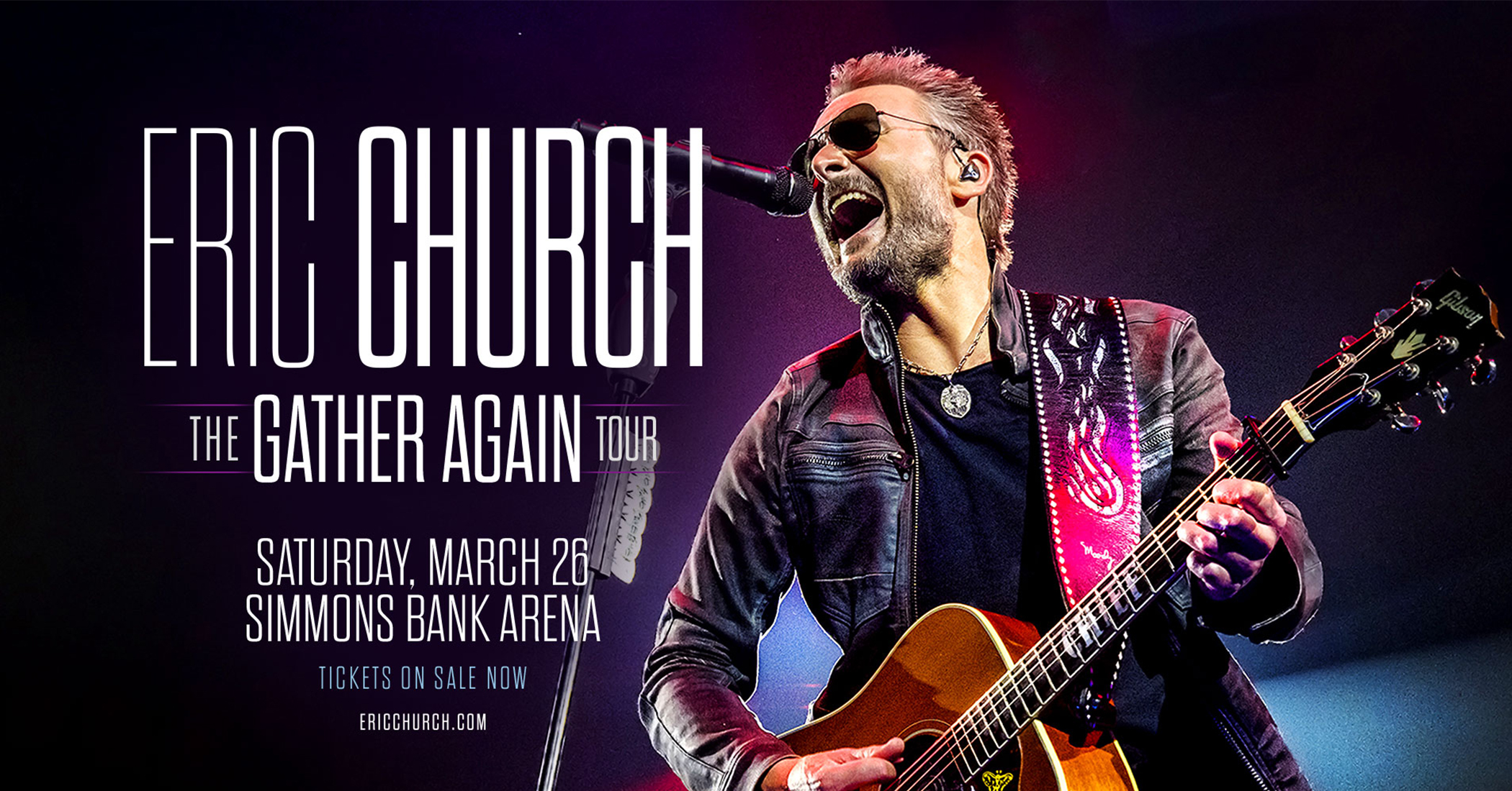 Reigning CMA Entertainer of the Year and current ACM Entertainer of the Year nominee Eric Church has his sights set on a return to the road with the announcement of a full arena tour, making at stop at Simmons Bank Arena in North Little Rock, Arkansas on March 26, 2022. The Gather Again Tour will kick off this fall and visit 55 cities throughout the U.S. and Canada, culminating at Madison Square Garden in the spring of 2022.